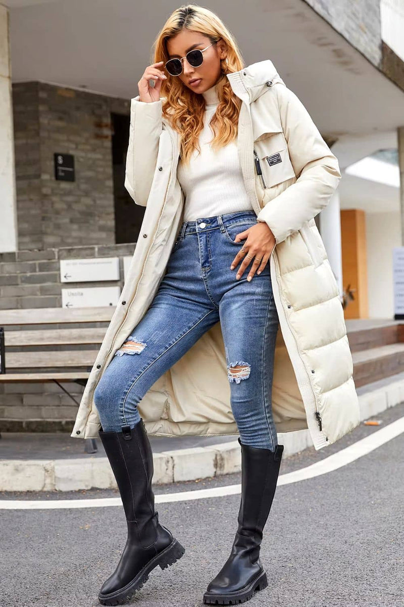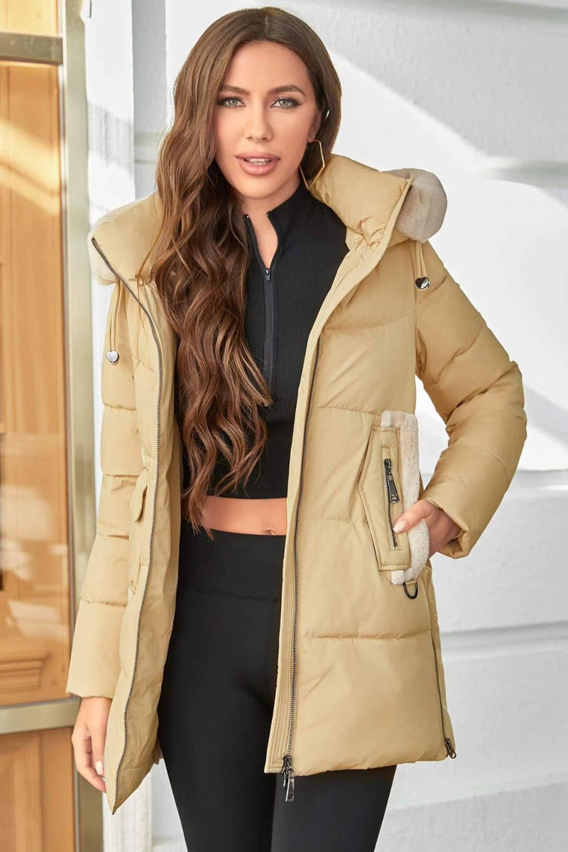 جاكيت مبطن مبطن بغطاء رأس من الفرو الصناعي